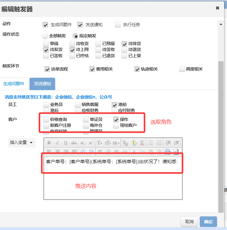 易抵达系统与企业微信实现无缝对接,能够自动、精准地向企业微信用户发送账单,问题件各类关键信息操作流程,支持向企业微信内部工作群、外部客户群双向推送服务。